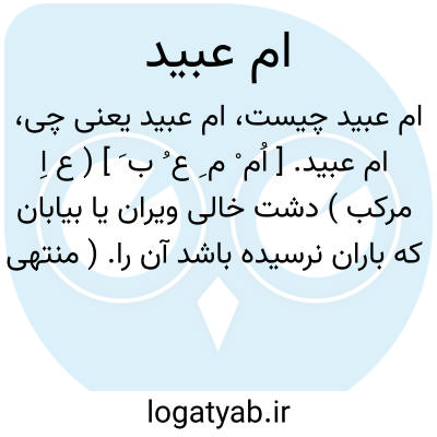 ام عبید. [ اُم ْ م ِ ع ُ ب َ ] ( ع اِ مرکب ) دشت خالی ویران یا بیابان که باران نرسیده باشد آن را. ( منتهی الارب ). زمین خالی و بیابان. ( از المرصع ). فلات.( از تاج العروس ). || نوعی ماهی بی پلک که در نیل مصر میباشد. ( از یادداشت مؤلف از المرصع ).