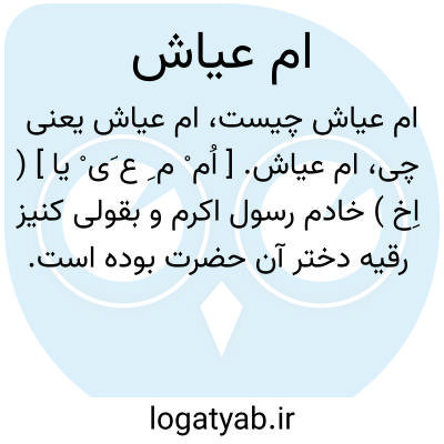 ام عیاش. [ اُم ْ م ِ ع َی ْ یا ] ( اِخ ) خادم رسول اکرم و بقولی کنیز رقیه دختر آن حضرت بوده است. رجوع به الاصابة فی تمییز الصحابة ج 8 ص 263 شود.