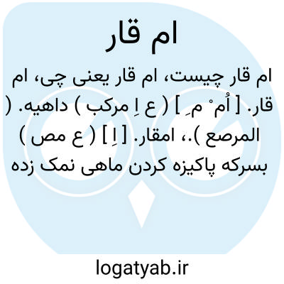 ام قار. [ اُم ْ م ِ ] ( ع اِ مرکب ) داهیه. ( المرصع ).، امقار. [ اِ ] ( ع مص ) بسرکه پاکیزه کردن ماهی نمک زده را. ( منتهی الارب ) ( آنندراج ) ( ناظم الاطباء ) ( از اقرب الموارد ). ماهی شور را در سرکه کردن. ( مصادر زوزنی ). || بدمزه گردیدن شیر. ( منتهی الارب ) ( آنندراج ) ( ناظم الاطباء ) ( از اقرب الموارد ). || تلخ شدن. ( منتهی الارب ) ( ناظم الاطباء ) ( آنندراج ). سخت تلخ شدن. ( مصادر زوزنی ) ( تاج المصادر بیهقی ). شراب را برای کسی تلخ کردن. ( از اقرب الموارد ).