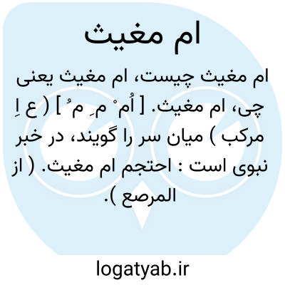 ام مغیث. [ اُم ْ م ِ م ُ ] ( ع اِ مرکب ) میان سر را گویند، در خبر نبوی است: احتجم ام مغیث. ( از المرصع ).