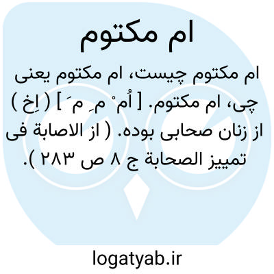 ام مکتوم. [ اُم ْ م ِ م َ ] ( اِخ ) از زنان صحابی بوده. ( از الاصابة فی تمییز الصحابة ج 8 ص 283 ).