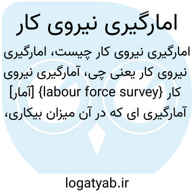 {labour force survey} [آمار] آمارگیری ای که در آن میزان بیکاری، اشتغال، خوداشتغالی، ساعات کار، تعلیق از کار، آموزش و کارورزی اندازه گیری می شود