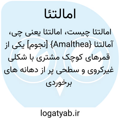 {Amalthea} [نجوم] یکی از قمرهای کوچک مشتری با شکلی غیرکروی و سطحی پر از دهانه های برخوردی