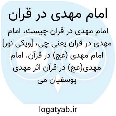 [ویکی نور] امام مهدی (عج) در قرآن. امام مهدی(عج) در قرآن اثر مهدی یوسفیان می باشد.