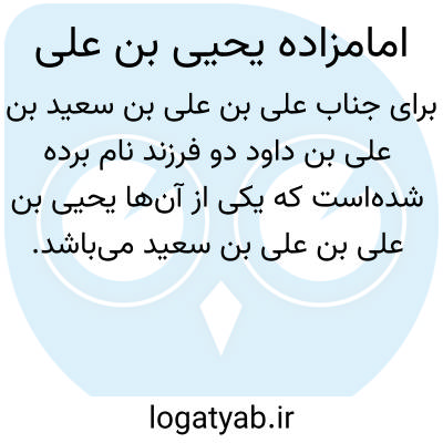 برای جناب علی بن علی بن سعید بن علی بن داود دو فرزند نام برده شدهاست که یکی از آنها یحیی بن علی بن علی بن سعید میباشد. قبر این بزرگوار در شهر همدان، بسیار عالی و باشکوه است. آنچه پس از سالها تفحص و بررسی درباره این بقعه مبارکه به آن معتقد شدیم و مدرک آن را نیز بیان خواهیم کرد این است که این مزار مربوط به یکی از علویان حسنی است که در همدان میزیسته و صاحب کرامت و جلال بوده است. شجرهٔ او به این ترتیب است: