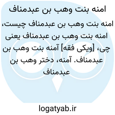 [ویکی فقه] آمنه بنت وهب بن عبدمناف. آمنه، دختر وهب بن عبدمناف بن زهرة بن کلاب از قبیله قریش، مادر پیامبر صلی الله علیه وآله وسلم بود.