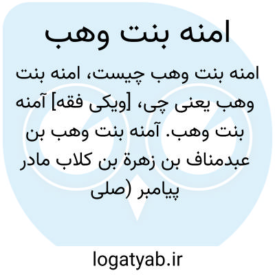 آمنه بنت وهب. آمِنه بنتِ وَهَب مادر پیامبر گرامی اسلام (ص). پدرش وَهَب بن عبد مناف بن زُهْره، از طایفۀ بنی زهره، و مادر او بَرّه، دختر عبدالعُزّی بن عثمان، از طایفۀ بنی عبدالدار قریش، بود. آمنه نزد عموی خود وهیب پرورش یافت و عبدالمطلب دختر وی، هاله، را برای خود و آمنه را برای پسرش عبدالله خواستگاری کرد (حدود سال ۵۳ یا ۵۴ قبل از هجرت) که حمزۀ سیدالشهدا (ع) از هاله و حضرت محمد (ص) از آمنه (در سال ۵۲ قبل از هجرت) متولد شدند. عبدالله اندکی قبل یا بعد از ولادت پیامبر (ص) در بازگشت از سفر تجاری شام در مدینه درگذشت. آمنه سه روز پیامبر (ص) را شیر داد. سپس ثویبه، کنیز ابولهب، چهار ماه و بعد از آن حلیمۀ سعدیه (حدود دو سال) شیردادن و پرورش آن حضرت را به عهده گرفت. آمنه در ۶ سالگی پیامبر، وی را برای دیدن اقوام پدری اش به مدینه برد. اما در بازگشت در ابواء درگذشت و همان جا به خاک سپرده شد.