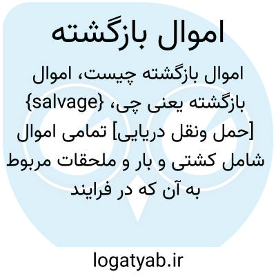 {salvage} [حمل ونقل دریایی] تمامی اموال شامل کشتی و بار و ملحقات مربوط به آن که در فرایند بازگردانی نجات داده میشود متـ. بازگشته