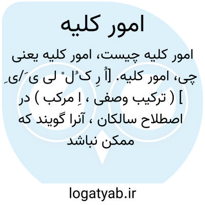 امور کلیه. [اُ رِ ک ُل ْ لی ی َ/ی ِ ] ( ترکیب وصفی، اِ مرکب ) در اصطلاح سالکان، آنرا گویند که ممکن نباشد راندن و دور کردن آن از عقل و هم یافتن آن در عین امکان پذیر نباشدو بعبارت دیگر آنکه در خارج موجود نباشد یعنی در خارج ذاتی نباشد که بدان حیات و علم نسبت داده شود. ( از کشاف اصطلاحات الفنون ). و رجوع به همین کتاب شود.