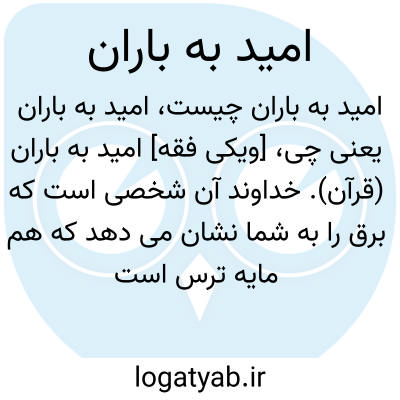 [ویکی فقه] امید به باران (قرآن). خداوند آن شخصی است که برق را به شما نشان می دهد که هم مایه ترس است هم امید و ابرهای سنگین بار ایجاد می کند.