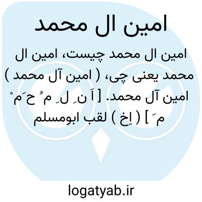( امین آل محمد ) امین آل محمد. [ اَ ن ِ ل ِ م ُ ح َم ْ م َ ] ( اِخ ) لقب ابومسلم خراسانی بود. ( یادداشت مؤلف ). و رجوع به ابومسلم شود.