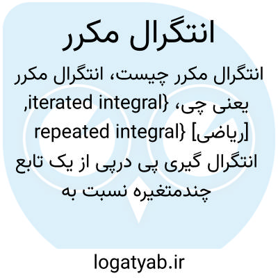 {iterated integral, repeated integral} [ریاضی] انتگرال گیری پی درپی از یک تابع چندمتغیره نسبت به هریک از متغیرها