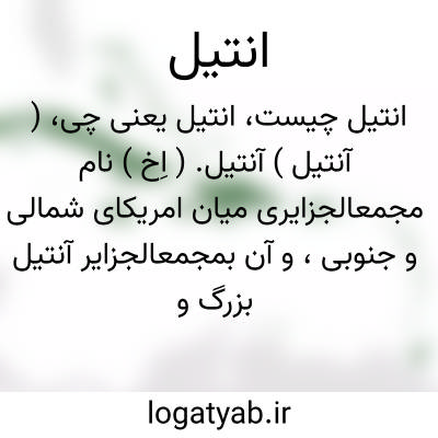 ( آنتیل ) آنتیل. ( اِخ ) نام مجمعالجزایری میان امریکای شمالی و جنوبی، و آن بمجمعالجزایر آنتیل بزرگ و مجمعالجزایر آنتیل کوچک منقسم است. سکنه مجموع آن 8400000 تن. محصول آن قند و شراب رم و قهوه است. جزایر عمده آنتیل بزرگ کوبا، ژامائیک ( جامائیکا ) و هائی تی است و جزایر مهم آنتیل کوچک بارباد، گادولوپ،مارتی نیک، سن مارتن، سن لوسی، تری نی ته و غیره است. آتش فشانیها و زلزله ها در این جزایر بسیار روی دهد.
