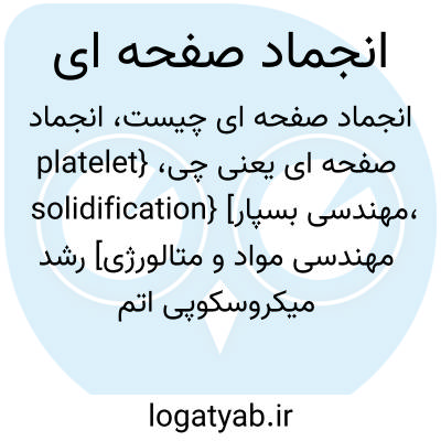 {platelet solidification} [مهندسی بسپار، مهندسی مواد و متالورژی] رشد میکروسکوپی اتم های مایع روی سطح جامد به طوری که میزان ناهمواری های آنها به ندرت از یک اتم تجاوز کند
