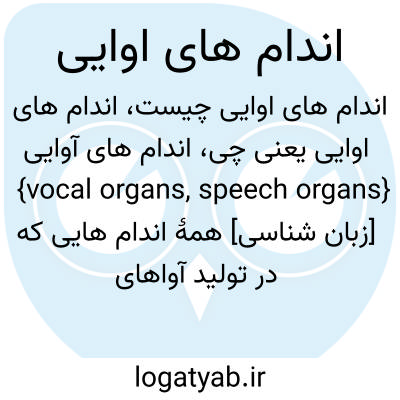 {vocal organs, speech organs} [زبان شناسی] همۀ اندام هایی که در تولید آواهای زبان سهیم هستند، از پردۀ دیافراگم تا لب ها
