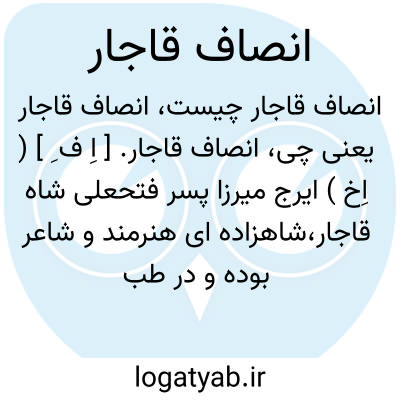 انصاف قاجار. [ اِ ف ِ ] ( اِخ ) ایرج میرزا پسر فتحعلی شاه قاجار،شاهزاده ای هنرمند و شاعر بوده و در طب نیز مهارت داشته. در 1222 هَ. ق. متولد و در هنگام تألیف مجمعالفصحاء ( 1274 هَ. ق. ) 52 ساله بوده است. از اوست: