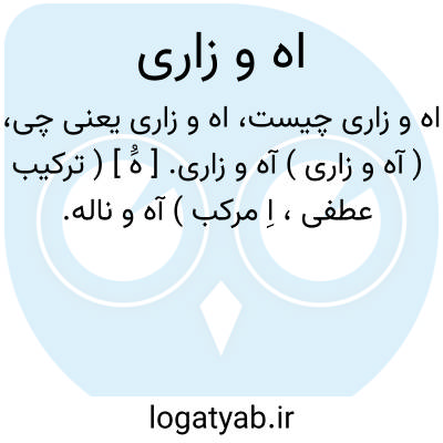 ( آه و زاری ) آه و زاری. [ هَُ ] ( ترکیب عطفی، اِ مرکب ) آه و ناله.