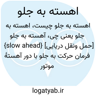 {slow ahead} [حمل ونقل دریایی] فرمان حرکت به جلو با دور آهستۀ موتور