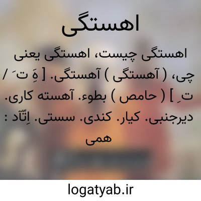 ( آهستگی ) آهستگی. [ هَِ ت َ / ت ِ ] ( حامص ) بطوء. آهسته کاری. دیرجنبی. کیار. کندی. سستی. اِتّآد: