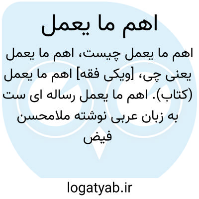 [ویکی فقه] اهم ما یعمل (کتاب). اهم ما یعمل رساله ای ست به زبان عربی نوشته ملامحسن فیض کاشانی و در موضوع علم اخلاق می باشد.