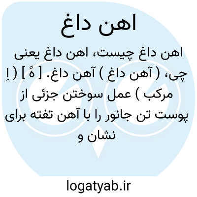 ( آهن داغ ) ( اسم ) ۱ - عمل سوختن جزوی از پوست تن جانور با آهن تفته برای نشان گذاشتن یا مداوا. ۲- عمل فرو بردن آهن تفته در آب آهن تاب.