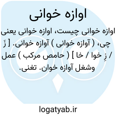 ( آوازه خوانی ) آوازه خوانی. [ زَ / زِ خوا / خا ] ( حامص مرکب ) عمل وشغل آوازه خوان. تغنی. خوانندگی. قوّالی. خنیاگری.