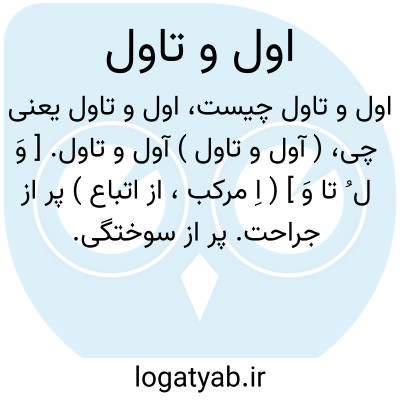 ( آول و تاول ) آول و تاول. [ وَ ل ُ تا وَ ] ( اِ مرکب، از اتباع ) پر از جراحت. پر از سوختگی. پر از جای گزیدگی.