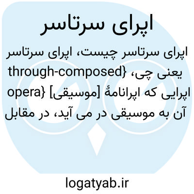 {through-composed opera} [موسیقی] اپرایی که اپرانامۀ آن به موسیقی در می آید، در مقابل انواع دیگر که در آنها از گفت وگوی معمولی نیز استفاده می شود