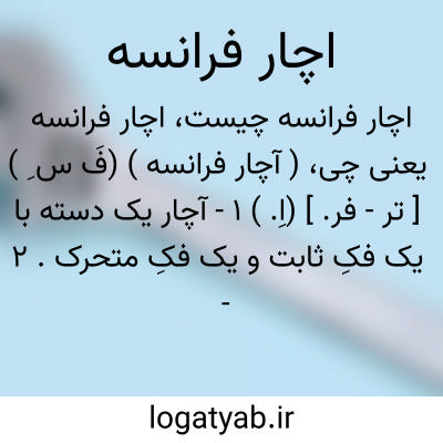 ( آچار فرانسه ) (فَ س ِ ) [ تر - فر. ] (اِ. ) ۱ - آچار یک دسته با یک فکِ ثابت و یک فکِ متحرک. ۲ - (عا. ) مجازاً به شخصی گویند که در کارهای مختلف (معمولاً فنی ) وارد است.