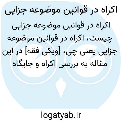 قانون گذار در سال ۱۳۶۱ ش، در ماده ۲۹ قانون راجع به مجازات اسلامی (ماده ۲۹قانون راجع به مجازات اسلامی: درجرایم قابل تعزیر، هرگاه کسی بر اثر اجبار یا اکراه که عادتا قابل تحمل نباشد مرتکب جرمی شود مجازات نخواهد شد در این مورد اجبارکننده به مجازات آن جرم محکوم می شود.) بدون اینکه از اکراه تعریفی ارائه دهد، آن را در کنار اجبار به عنوان یکی از عواملی که از فاعل رفع مسئولیت می کند نام برده است. در سال ۱۳۷۰ ش، ماده ۵۴ قانون مجازات اسلامی با تغییراتی در عبارت، جانشین ماده ۲۹ قانون راجع به مجازات اسلامی شده است.