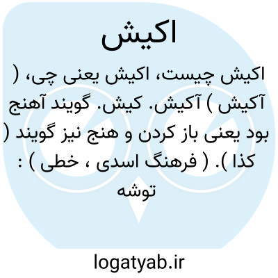 ( آکیش ) آکیش. کیش. گویند آهنج بود یعنی باز کردن و هنج نیز گویند ( کذا ). ( فرهنگ اسدی، خطی ):