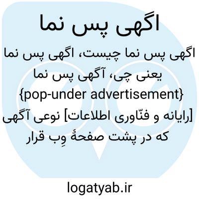 {pop-under advertisement} [رایانه و فنّاوری اطلاعات] نوعی آگهی که در پشت صفحۀ وِب قرار می گیرد و به محض خروج کاربر از صفحه، پیش روی کاربر، ظاهر می شود