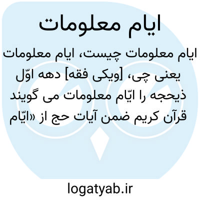 [ویکی فقه] دهه اوّل ذیحجه را ایّام معلومات می گویند قرآن کریم ضمن آیات حج از «ایّام معلومات» نام برده و امر به یاد کردن خداوند در این ایّام کرده است. منظور از ایّام معلومات مراد از آن بنابر قول مشهور ـ بلکه ادعای اجماع بر آن شده ـ دهه اوّل ذیحجّه است.