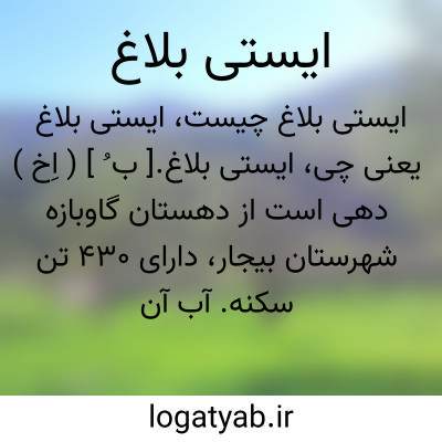 ایستی بلاغ.[ ب ُ ] ( اِخ ) دهی است از دهستان گاوبازه شهرستان بیجار، دارای 430 تن سکنه. آب آن از چشمه و محصول آن غلات و لبنیات است. ( از فرهنگ جغرافیایی ایران ج 5 ).
