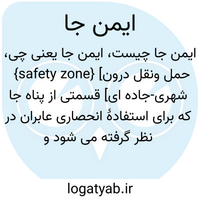 {safety zone} [حمل ونقل درون شهری-جاده ای] قسمتی از پناه جا که برای استفادۀ انحصاری عابران در نظر گرفته می شود و با نصب علائم مناسب، ازجمله خط کشی، طوری متمایز می گردد که به سادگی قابل رؤیت باشد