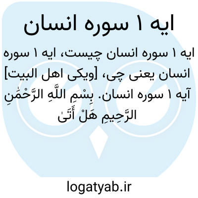 [ویکی اهل البیت] آیه 1 سوره انسان. بِسْمِ اللَّهِ الرَّحْمَٰنِ الرَّحِیمِ هَلْ أَتَیٰ عَلَی الْإِنْسَانِ حِینٌ مِنَ الدَّهْرِ لَمْ یَکُنْ شَیْئًا مَذْکُورًا