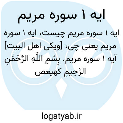 [ویکی اهل البیت] آیه 1 سوره مریم. بِسْمِ اللَّهِ الرَّحْمَٰنِ الرَّحِیمِ کهیعص