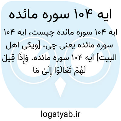 [ویکی اهل البیت] آیه 104 سوره مائده. وَإِذَا قِیلَ لَهُمْ تَعَالَوْا إِلَیٰ مَا أَنْزَلَ اللَّهُ وَإِلَی الرَّسُولِ قَالُوا حَسْبُنَا مَا وَجَدْنَا عَلَیْهِ آبَاءَنَا ۚ أَوَلَوْ کَانَ آبَاؤُهُمْ لَا یَعْلَمُونَ شَیْئًا وَلَا یَهْتَدُونَ