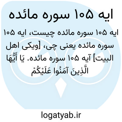 [ویکی اهل البیت] آیه 105 سوره مائده. یَا أَیُّهَا الَّذِینَ آمَنُوا عَلَیْکُمْ أَنْفُسَکُمْ ۖ لَا یَضُرُّکُمْ مَنْ ضَلَّ إِذَا اهْتَدَیْتُمْ ۚ إِلَی اللَّهِ مَرْجِعُکُمْ جَمِیعًا فَیُنَبِّئُکُمْ بِمَا کُنْتُمْ تَعْمَلُونَ