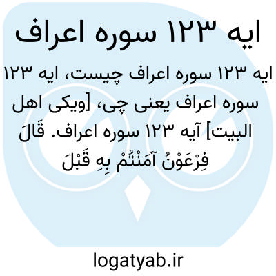 [ویکی اهل البیت] آیه 123 سوره اعراف. قَالَ فِرْعَوْنُ آمَنْتُمْ بِهِ قَبْلَ أَنْ آذَنَ لَکُمْ ۖ إِنَّ هَٰذَا لَمَکْرٌ مَکَرْتُمُوهُ فِی الْمَدِینَةِ لِتُخْرِجُوا مِنْهَا أَهْلَهَا ۖ فَسَوْفَ تَعْلَمُونَ