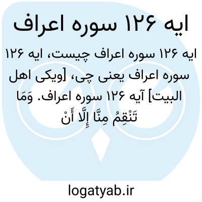 [ویکی اهل البیت] آیه 126 سوره اعراف. وَمَا تَنْقِمُ مِنَّا إِلَّا أَنْ آمَنَّا بِآیَاتِ رَبِّنَا لَمَّا جَاءَتْنَا ۚ رَبَّنَا أَفْرِغْ عَلَیْنَا صَبْرًا وَتَوَفَّنَا مُسْلِمِینَ