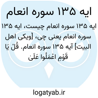 [ویکی اهل البیت] آیه 135 سوره انعام. قُلْ یَا قَوْمِ اعْمَلُوا عَلَیٰ مَکَانَتِکُمْ إِنِّی عَامِلٌ ۖ فَسَوْفَ تَعْلَمُونَ مَنْ تَکُونُ لَهُ عَاقِبَةُ الدَّارِ ۗ إِنَّهُ لَا یُفْلِحُ الظَّالِمُونَ