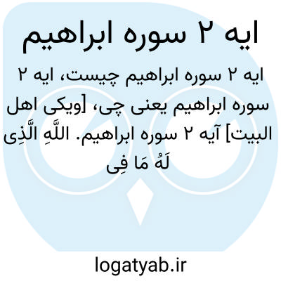 [ویکی اهل البیت] آیه 2 سوره ابراهیم. اللَّهِ الَّذِی لَهُ مَا فِی السَّمَاوَاتِ وَمَا فِی الْأَرْضِ ۗ وَوَیْلٌ لِلْکَافِرِینَ مِنْ عَذَابٍ شَدِیدٍ