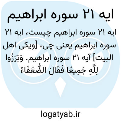 [ویکی اهل البیت] آیه 21 سوره ابراهیم. وَبَرَزُوا لِلَّهِ جَمِیعًا فَقَالَ الضُّعَفَاءُ لِلَّذِینَ اسْتَکْبَرُوا إِنَّا کُنَّا لَکُمْ تَبَعًا فَهَلْ أَنْتُمْ مُغْنُونَ عَنَّا مِنْ عَذَابِ اللَّهِ مِنْ شَیْءٍ ۚ قَالُوا لَوْ هَدَانَا اللَّهُ لَهَدَیْنَاکُمْ ۖ سَوَاءٌ عَلَیْنَا أَجَزِعْنَا أَمْ صَبَرْنَا مَا لَنَا مِنْ مَحِیصٍ