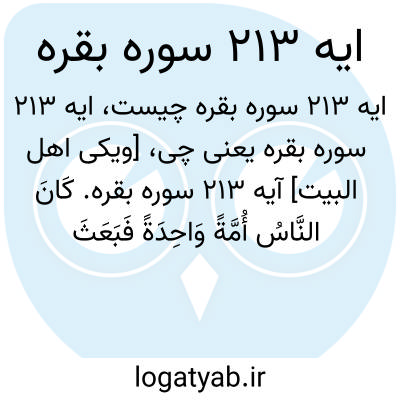 [ویکی اهل البیت] آیه 213 سوره بقره. کَانَ النَّاسُ أُمَّةً وَاحِدَةً فَبَعَثَ اللَّهُ النَّبِیِّینَ مُبَشِّرِینَ وَمُنْذِرِینَ وَأَنْزَلَ مَعَهُمُ الْکِتَابَ بِالْحَقِّ لِیَحْکُمَ بَیْنَ النَّاسِ فِیمَا اخْتَلَفُوا فِیهِ ۚ وَمَا اخْتَلَفَ فِیهِ إِلَّا الَّذِینَ أُوتُوهُ مِنْ بَعْدِ مَا جَاءَتْهُمُ الْبَیِّنَاتُ بَغْیًا بَیْنَهُمْ ۖ فَهَدَی اللَّهُ الَّذِینَ آمَنُوا لِمَا اخْتَلَفُوا فِیهِ مِنَ الْحَقِّ بِإِذْنِهِ ۗ وَاللَّهُ یَهْدِی مَنْ یَشَاءُ إِلَیٰ صِرَاطٍ مُسْتَقِیمٍ