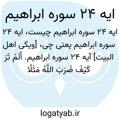 [ویکی اهل البیت] آیه 24 سوره ابراهیم. أَلَمْ تَرَ کَیْفَ ضَرَبَ اللَّهُ مَثَلًا کَلِمَةً طَیِّبَةً کَشَجَرَةٍ طَیِّبَةٍ أَصْلُهَا ثَابِتٌ وَفَرْعُهَا فِی السَّمَاءِ