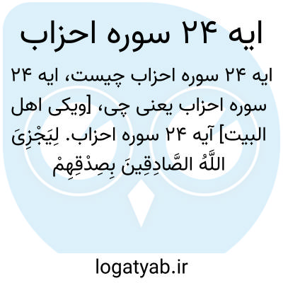 [ویکی اهل البیت] آیه 24 سوره احزاب. لِیَجْزِیَ اللَّهُ الصَّادِقِینَ بِصِدْقِهِمْ وَیُعَذِّبَ الْمُنَافِقِینَ إِنْ شَاءَ أَوْ یَتُوبَ عَلَیْهِمْ ۚ إِنَّ اللَّهَ کَانَ غَفُورًا رَحِیمًا
