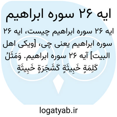 [ویکی اهل البیت] آیه 26 سوره ابراهیم. وَمَثَلُ کَلِمَةٍ خَبِیثَةٍ کَشَجَرَةٍ خَبِیثَةٍ اجْتُثَّتْ مِنْ فَوْقِ الْأَرْضِ مَا لَهَا مِنْ قَرَارٍ
