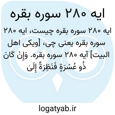 [ویکی اهل البیت] آیه 280 سوره بقره. وَإِنْ کَانَ ذُو عُسْرَةٍ فَنَظِرَةٌ إِلَیٰ مَیْسَرَةٍ ۚ وَأَنْ تَصَدَّقُوا خَیْرٌ لَکُمْ ۖ إِنْ کُنْتُمْ تَعْلَمُونَ