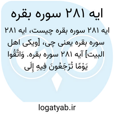 [ویکی اهل البیت] آیه 281 سوره بقره. وَاتَّقُوا یَوْمًا تُرْجَعُونَ فِیهِ إِلَی اللَّهِ ۖ ثُمَّ تُوَفَّیٰ کُلُّ نَفْسٍ مَا کَسَبَتْ وَهُمْ لَا یُظْلَمُونَ